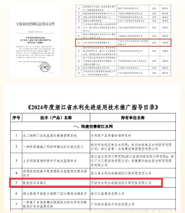 喜報 | 我院三項成果先后入選《2024年度寧波市優(yōu)質(zhì)產(chǎn)品推薦目錄》《2024年度浙江省水利先進適用技術(shù)推廣指導目錄》