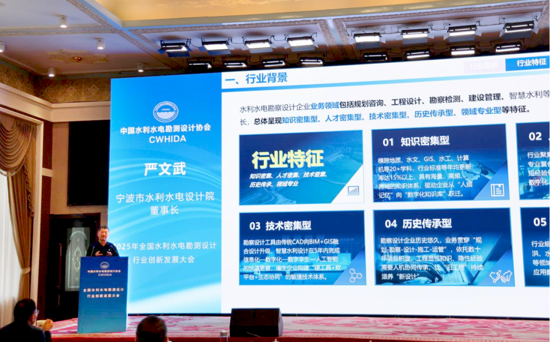 我院董事長、院長嚴(yán)文武在大會(huì)上作了《大模型賦能水利水電勘察設(shè)計(jì)企業(yè)數(shù)字化轉(zhuǎn)型》專題報(bào)告,系統(tǒng)分享了我院在人工智能大模型技術(shù)驅(qū)動(dòng)下,推進(jìn)企業(yè)數(shù)字化轉(zhuǎn)型的實(shí)踐路徑與成果經(jīng)驗(yàn)。