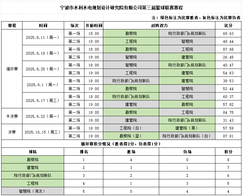 八月盛夏,激情點(diǎn)燃。寧波市水利院第三屆"智慧杯"職工籃球聯(lián)賽在集士港體育公園籃球場(chǎng)火熱開(kāi)幕!這不僅是一場(chǎng)競(jìng)技的較量,更是一次寧波院人團(tuán)結(jié)拼搏、斗志昂揚(yáng)的集中展現(xiàn)。經(jīng)過(guò)兩個(gè)月的鏖戰(zhàn),最終勘察院隊(duì)強(qiáng)勢(shì)問(wèn)鼎冠軍,建管院隊(duì)與院行政部門(mén)&規(guī)劃聯(lián)隊(duì)分別獲得亞軍、季軍?,F(xiàn)在,就讓我們一同回顧這段充滿汗水與激情的籃球時(shí)光!