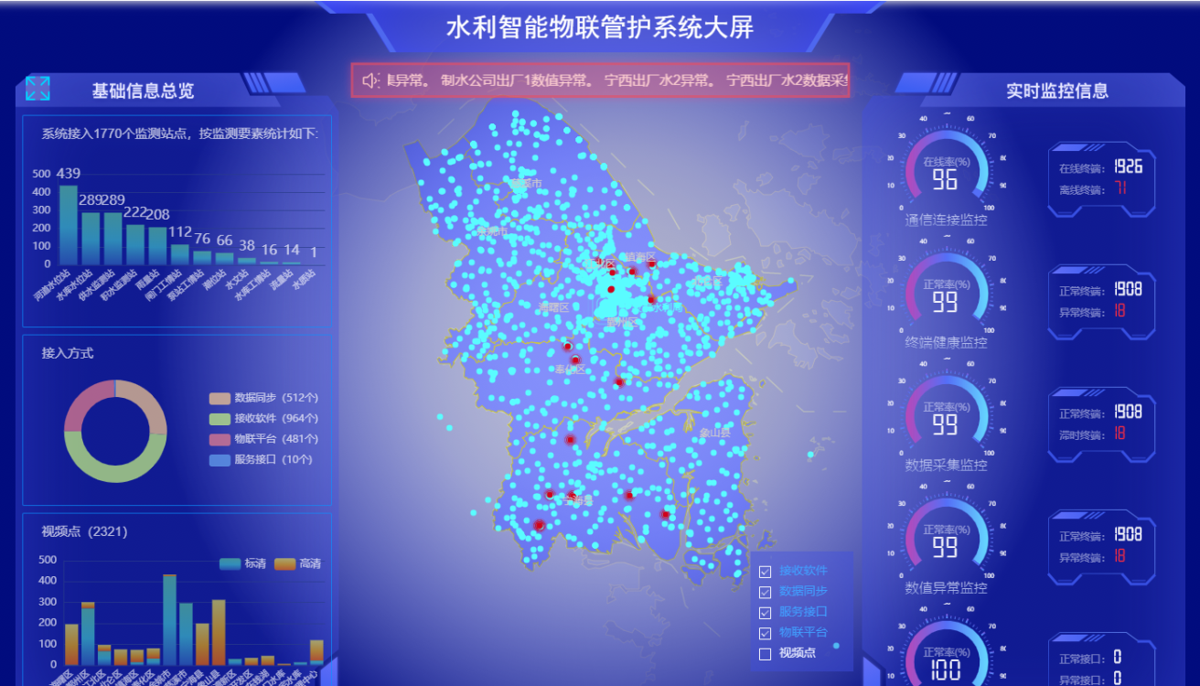 智慧水利物聯(lián)管護(hù)平臺(tái),對(duì)水利各部門(mén)、各廠商、各類(lèi)型監(jiān)測(cè)設(shè)備的,健康狀態(tài)與數(shù)據(jù)傳輸?shù)冗M(jìn)行統(tǒng)一管理,實(shí)現(xiàn)水利要素實(shí)時(shí)“感知-互聯(lián)”,強(qiáng)化水利物聯(lián)感知監(jiān)管,為智慧水利建設(shè)提供基礎(chǔ)支撐。