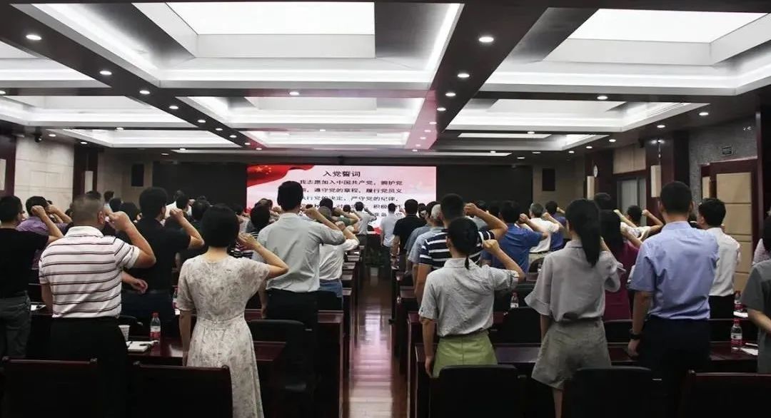 隨著雄壯激昂的《義勇軍進行曲》歌聲響起,市水利局迎接建黨99周年紀念大會正式拉開帷幕。“我志愿加入中國共產(chǎn)黨……” 全體黨員昂首挺胸,高舉右手,一起重溫入黨的錚錚誓言。會議現(xiàn)場,宣誓儀式氣氛莊嚴。