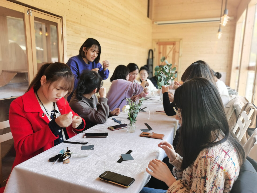 本次三八活動(dòng)特設(shè)皮革制作課程,大家動(dòng)手制作專(zhuān)屬自己的節(jié)日禮物,從反復(fù)打磨到巧手縫制,專(zhuān)業(yè)老師熱情普及皮革制作工藝,耐心傳授縫合技巧手法,各色精巧的鑰匙扣在慧心巧手間誕生,深受喜愛(ài)。