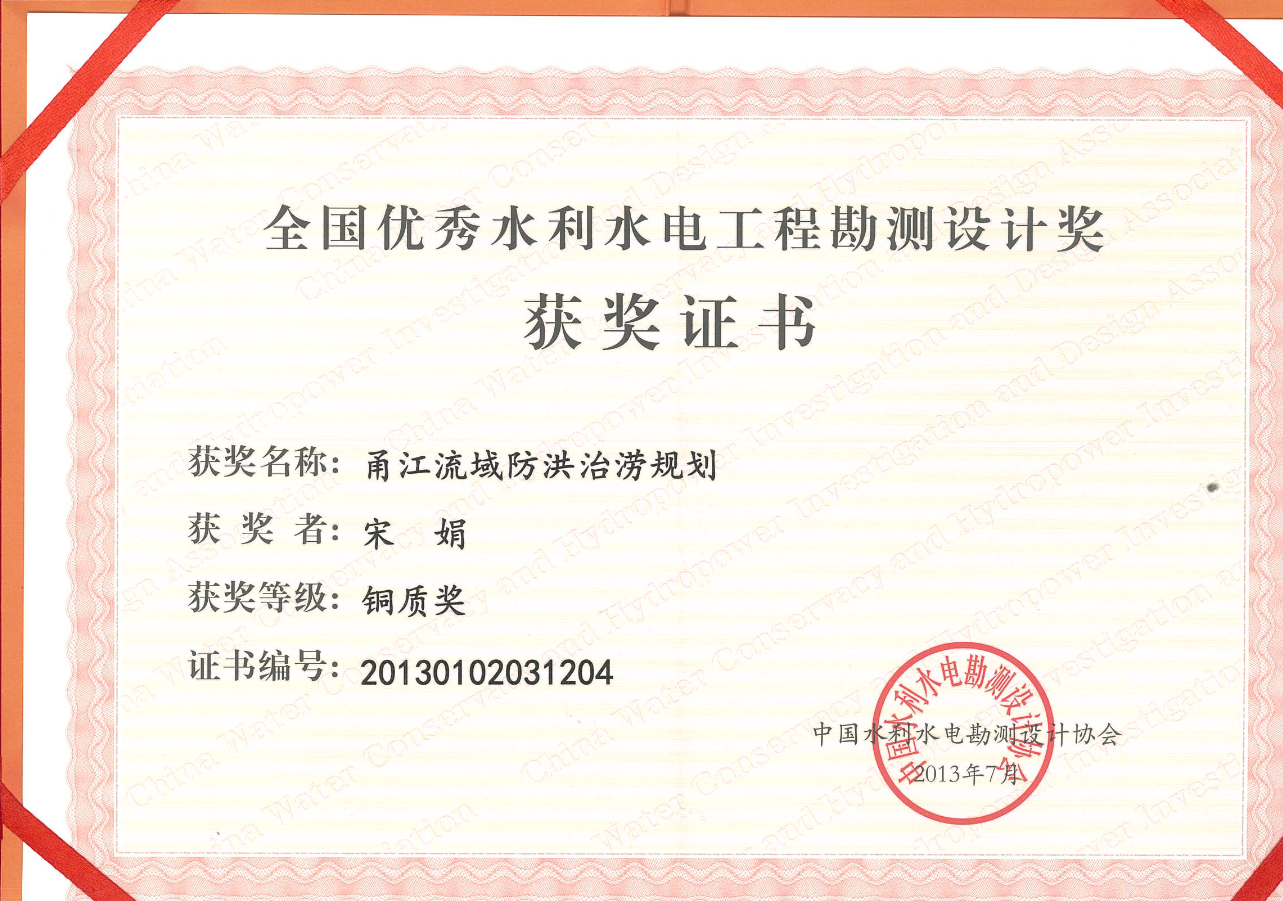全國優(yōu)秀水利水電工程勘測設計獎