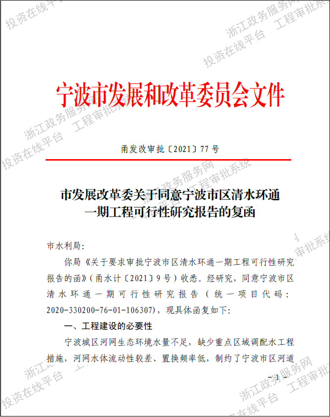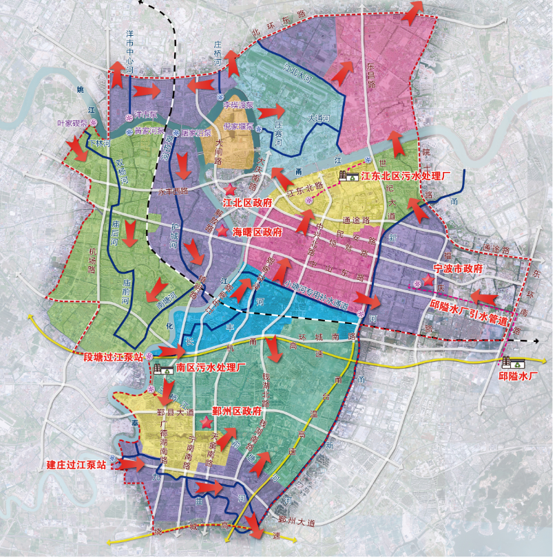 寧波市區(qū)清水環(huán)通一期工程西起機(jī)場(chǎng)高架、東至福慶路,北起北環(huán)高架,南至鄞州大道,面積合計(jì)約146km2,是寧波市區(qū)重要的河網(wǎng)引配水工程,亦是緩解老城內(nèi)澇壓力的有力舉措。為提升河網(wǎng)環(huán)境用水量、促進(jìn)水系互聯(lián)互通、改善水體流態(tài),寧波市區(qū)清水環(huán)通一期工程創(chuàng)新性的引入“精準(zhǔn)補(bǔ)水、高速水路”的計(jì)理念,切實(shí)解決了寧波城區(qū)現(xiàn)狀大水漫灌的河網(wǎng)調(diào)水模式下調(diào)水效率低下、補(bǔ)水針對(duì)性不強(qiáng)等痛點(diǎn)、難點(diǎn)問(wèn)題。該工程可研報(bào)告于2021年5月獲寧波市發(fā)展和改革委員會(huì)批復(fù)。