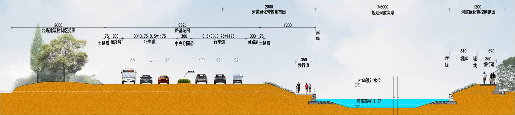 工程位于海曙區(qū)西側(cè),南起鄞江,北至姚江,為實(shí)現(xiàn)對(duì)海曙西側(cè)山區(qū)洪水的攔截,共整治河道長(zhǎng)24km,建設(shè)閘站40座,閘門(mén)總凈寬554m,泵站22m3/s,改建新建橋梁42座。其中有3.5km與G228國(guó)道并線,為協(xié)調(diào)國(guó)道與河道之間用地布局,通過(guò)優(yōu)化河道斷面型式和堤線線位,實(shí)現(xiàn)了對(duì)土地的集約利用,打造一條海曙西部交通和河道的靚麗風(fēng)景線。