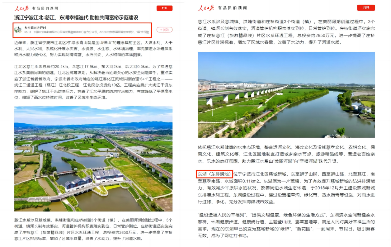 助力“幸福河湖”:人民日報客戶端報道我院慈城新城東排澇池水利工程