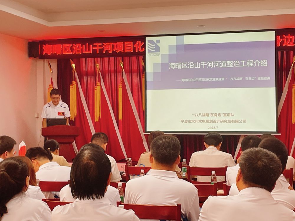 近日,海曙區(qū)直機關(guān)工委和區(qū)水利局以“五最黨建”為引領(lǐng),在集士港鎮(zhèn)岳童村文化禮堂舉行沿山干河項目化黨建聯(lián)建暨“‘八八戰(zhàn)略’在身邊”主題宣講啟動儀式,我院作為沿山干河項目參建單位、活動的承辦方參與了啟動儀式。我院黨總支書記、副院長王洪霞,工程設(shè)計項目組及青年黨員代表十余人參加了上述活動。
