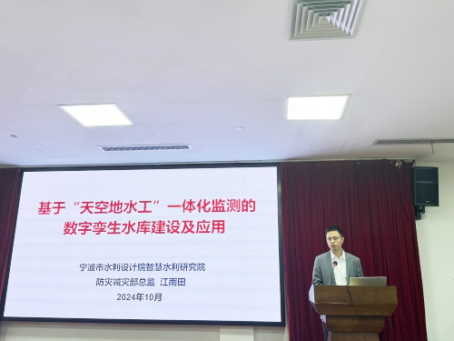 現(xiàn)場(chǎng),我院智慧水利研究院防災(zāi)減災(zāi)部總監(jiān)江雨田受邀就“基于‘天空地水工’一體化監(jiān)測(cè)的數(shù)字孿生水庫(kù)建設(shè)及應(yīng)用”為題進(jìn)行了分享,從“天空地水工”一體化監(jiān)測(cè)感知網(wǎng)的要素構(gòu)成、如何建設(shè)數(shù)字孿生水利、數(shù)字孿生水利工程建設(shè)的關(guān)鍵技術(shù)、“數(shù)字孿生周公宅-皎口梯級(jí)水庫(kù)”數(shù)字孿生應(yīng)用實(shí)例等方面介紹,為參會(huì)人員帶來(lái)了一場(chǎng)圖文并茂、知行兼?zhèn)洹⒈薇偃肜锏膶?zhuān)題講座。