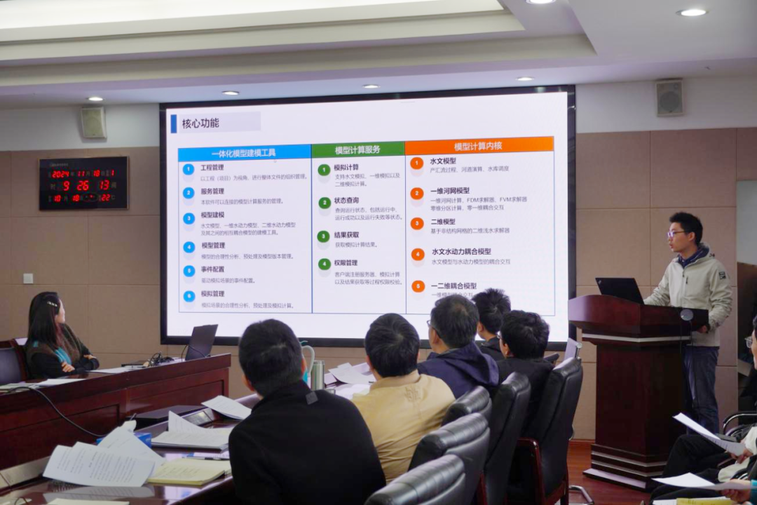 介紹結(jié)束后,參會人員針對該平臺的核心功能和實(shí)操應(yīng)用進(jìn)行熱烈交流。大家一致認(rèn)為,該平臺是目前我院自主研發(fā)的通用化、模塊化、精細(xì)化的水文水動力數(shù)學(xué)模型及配套分析工具的集大成者,能夠?qū)崿F(xiàn)對流域水情的實(shí)時模擬和精準(zhǔn)預(yù)測,能夠?yàn)榉篮檎{(diào)度、水資源管理等水利治理管理工作提供兼具前瞻性、科學(xué)性、精準(zhǔn)性、安全性的決策支撐。